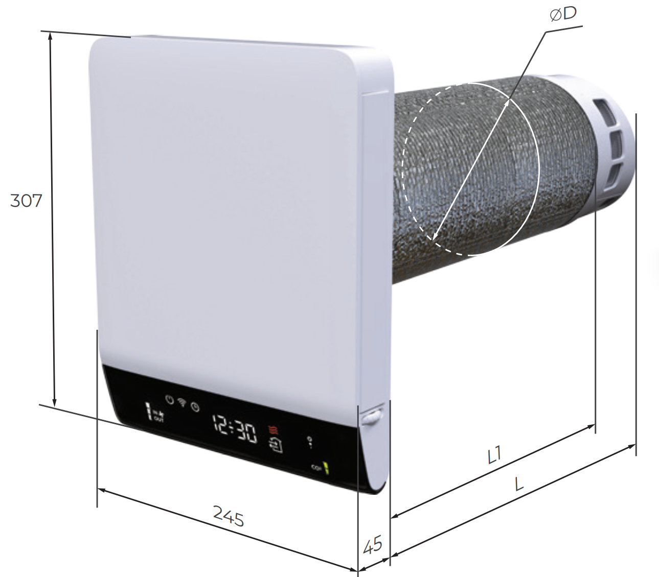 Breezy Eco 160-E – Dezentrales Lüftungsgerät mit elektrischem Heizregister (Nachheizung), EC-Motor und App-Steuerung (Smartphone-Steuerung)